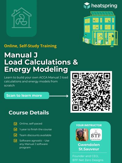 BTF is pleased to share a wonderful course in Manual J Energy Modeling. Built off of our presentations given across New England over the past several years, this crash course has had hundreds of participants and wonderful feedback. Level up your career today!